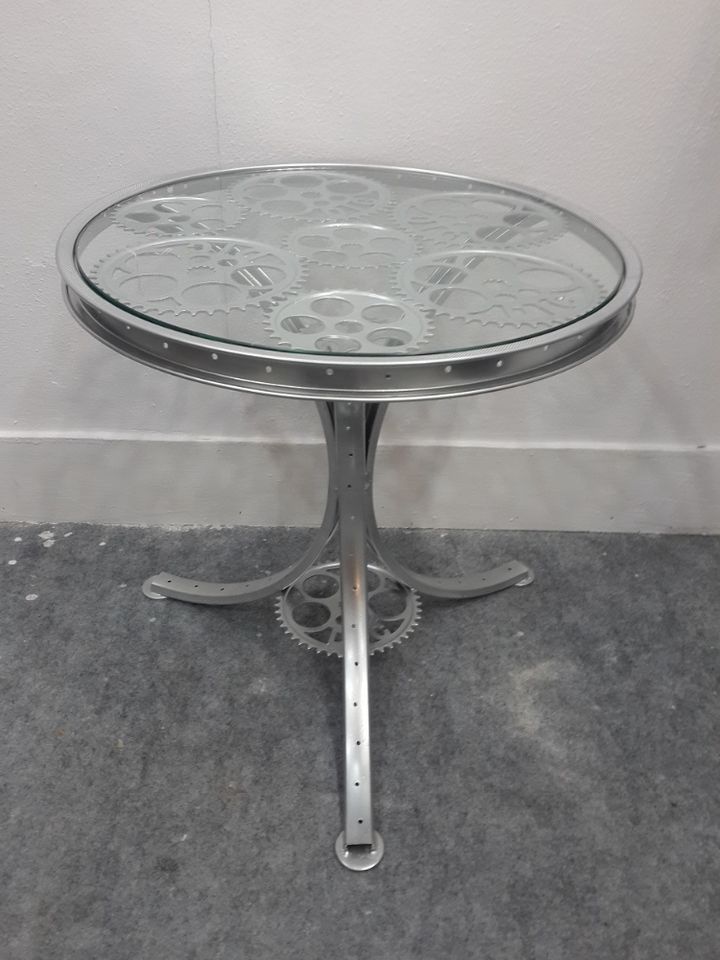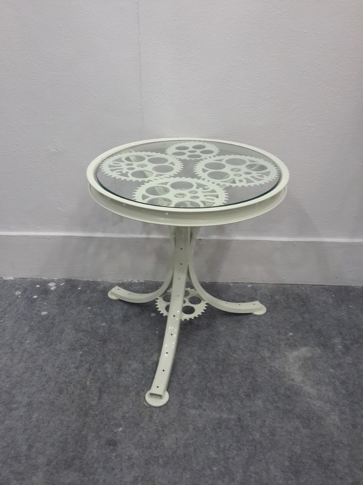 MESA DE BICICLETA BLANCA:HIERRO/VIDRIO
