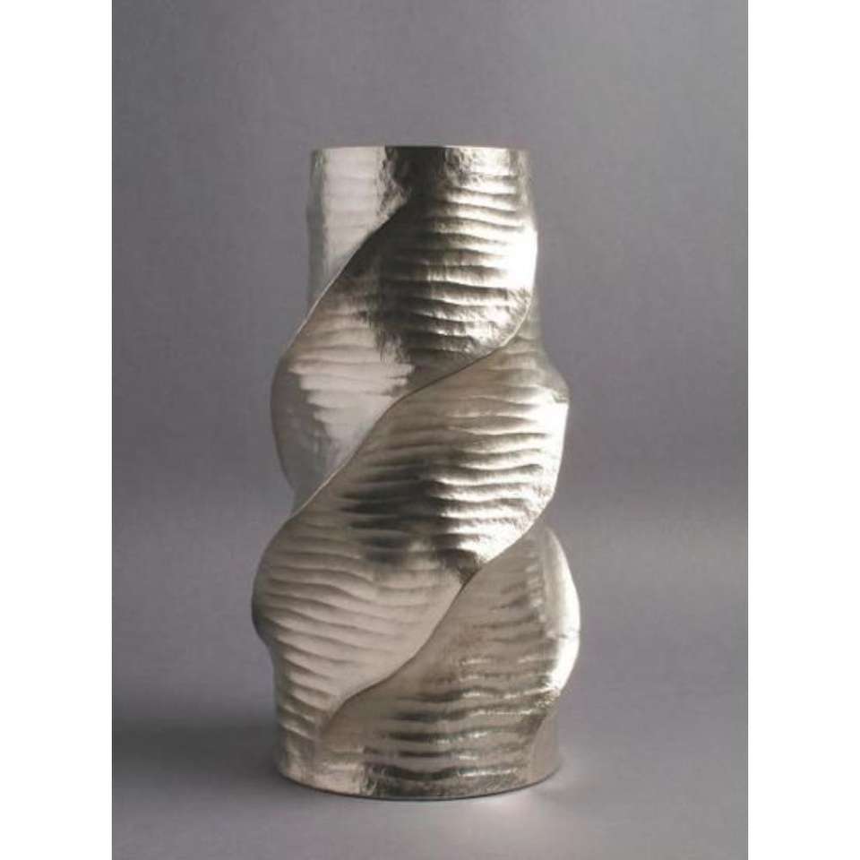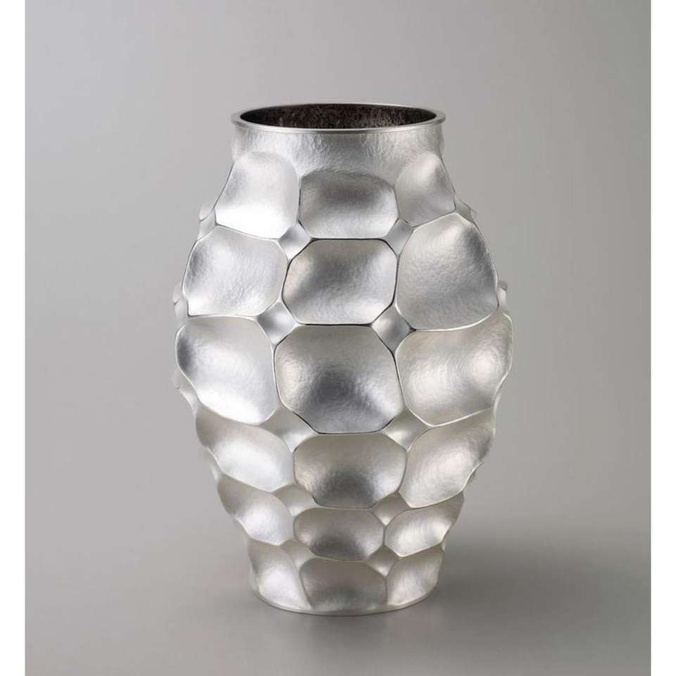 Florero de flores de metal con relieve dorado