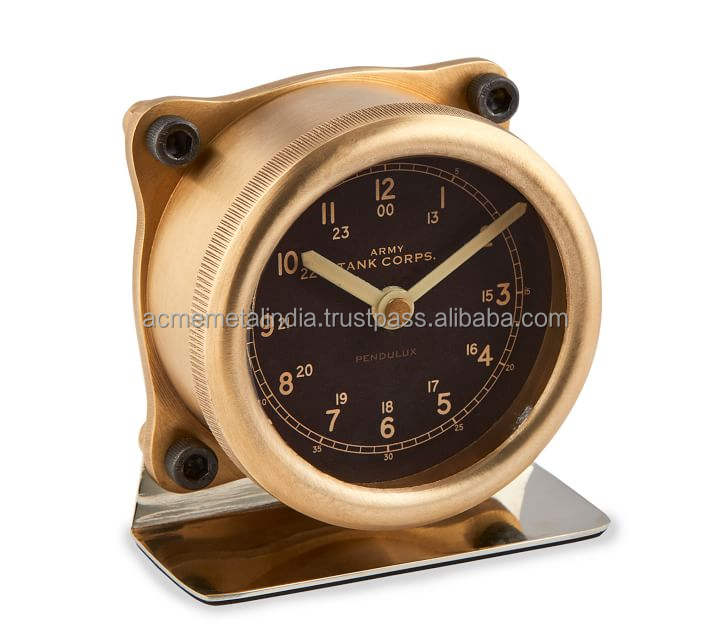 Reloj de mesa de madera geométrico creativo en estilo antiguo con metal dorado perfecto para una decoración elegante de hotel