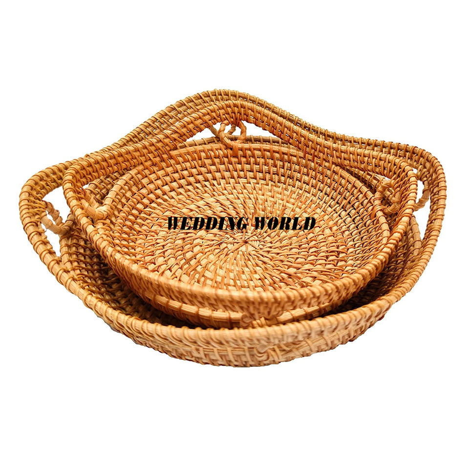 Bandeja de servicio de ratán decorativa para mesa, tamaño personalizado, plato hecho a mano, clásico, elegante, nueva llegada, venta al por mayor, bandeja de servicio de ratán