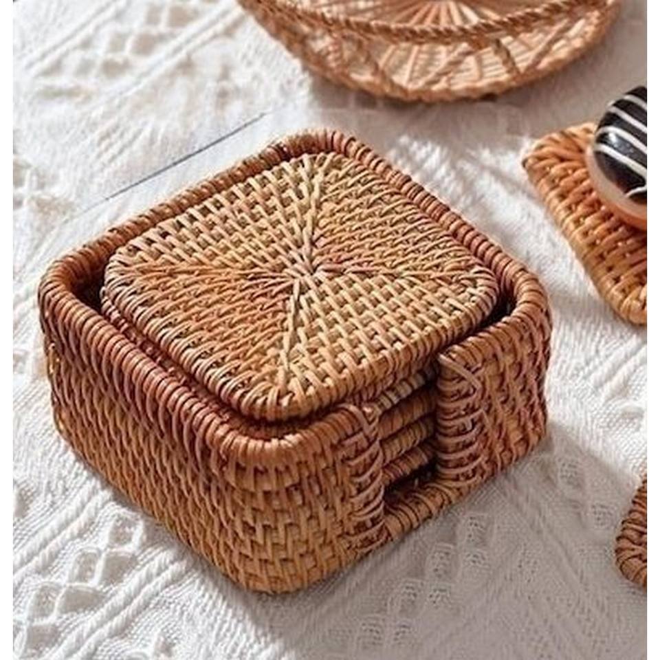 Alfombrilla de mesa resistente al calor, posavasos de té, accesorios de cocina, posavasos de yute de mimbre con soporte de diseño único