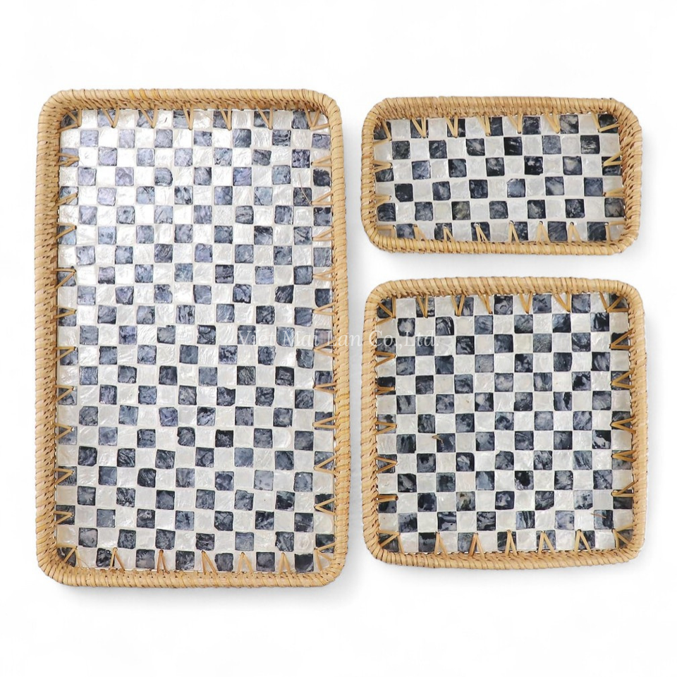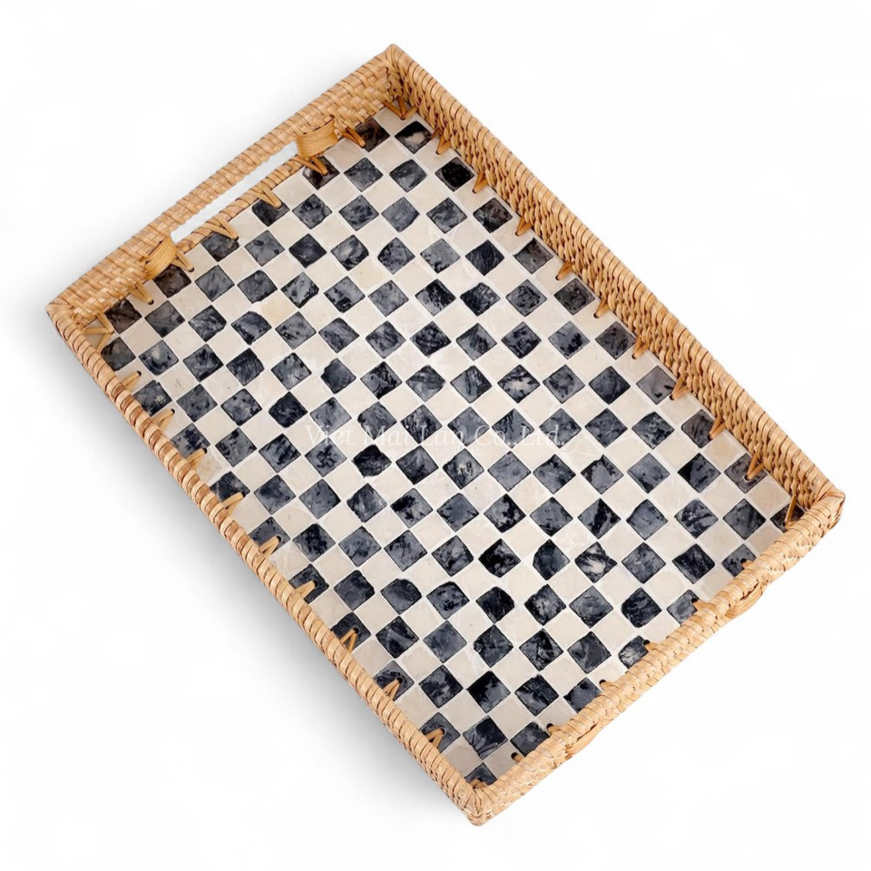 Bandeja de Servicio de Mesa Hecha a Mano con Ratán y Madreperla para Actividades Diarias de Cocina y Comedor
