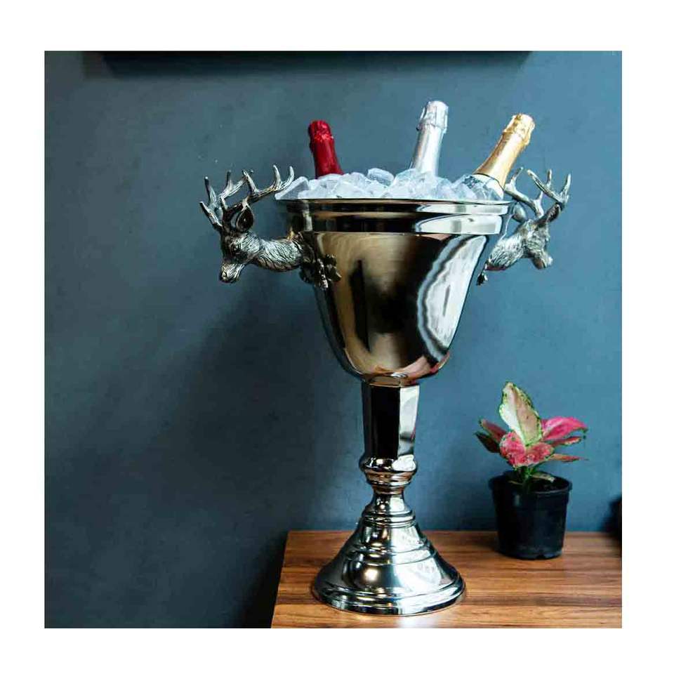 Enfriador de Bebidas, Champán y Vino de Latón con Acabado en Níquel para Bar, Discoteca, Decoración de Fiestas y Accesorios