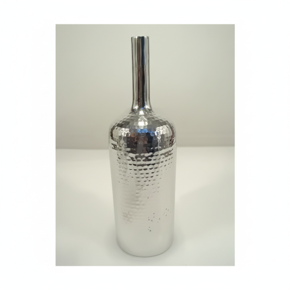 Centro de mesa, florero de Color plateado brillante, diseño clásico, maceta martillada y maceta, decoración de habitación de cama