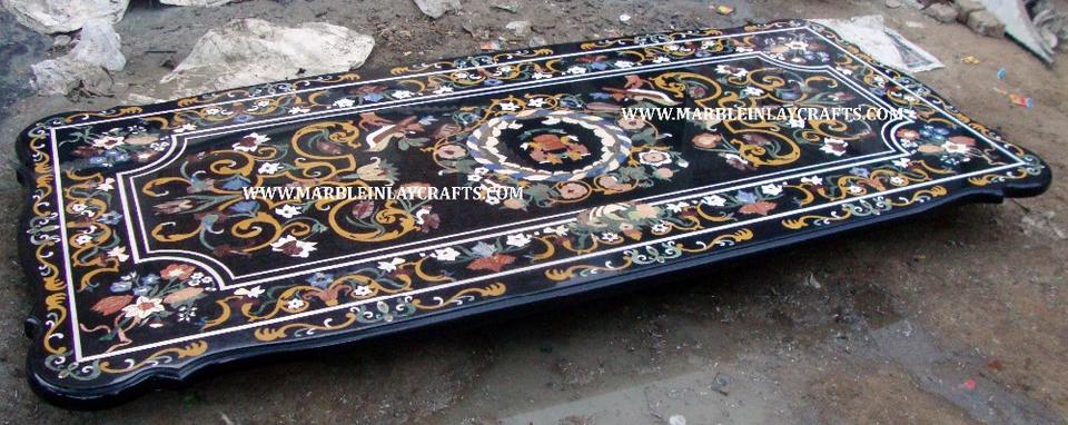 Tablero de mesa con incrustaciones de mármol blancoTipo
