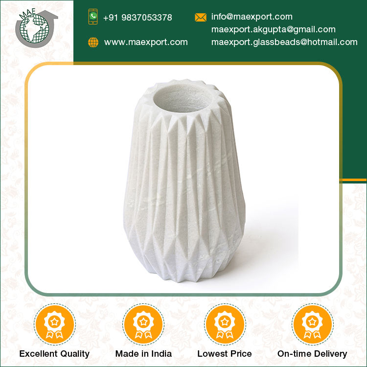 Florero de mármol blanco con forma de paraguas clásico, florero de mesa decorativo grande para decoración del hogar, venta al por mayor, hecho en India