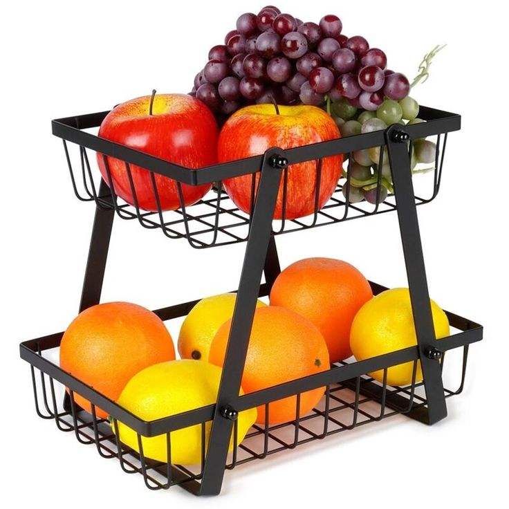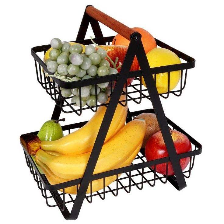 Cestas de Almacenamiento de Frutas y Verduras para Encimera de Cocina, de 2 Niveles, con Asa de Madera
