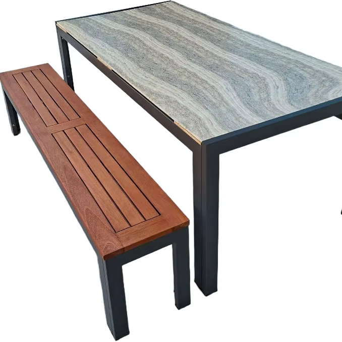 Juego de mesa de mezcla de piedra personalizada, mesa de madera, mezcla de Metal Acacia/eucalipto/teca para solicitud exterior, fabricación de Vietnam, característica duradera