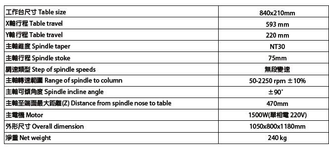 593 mmDesplazamiento de la Mesa (X) (mm)