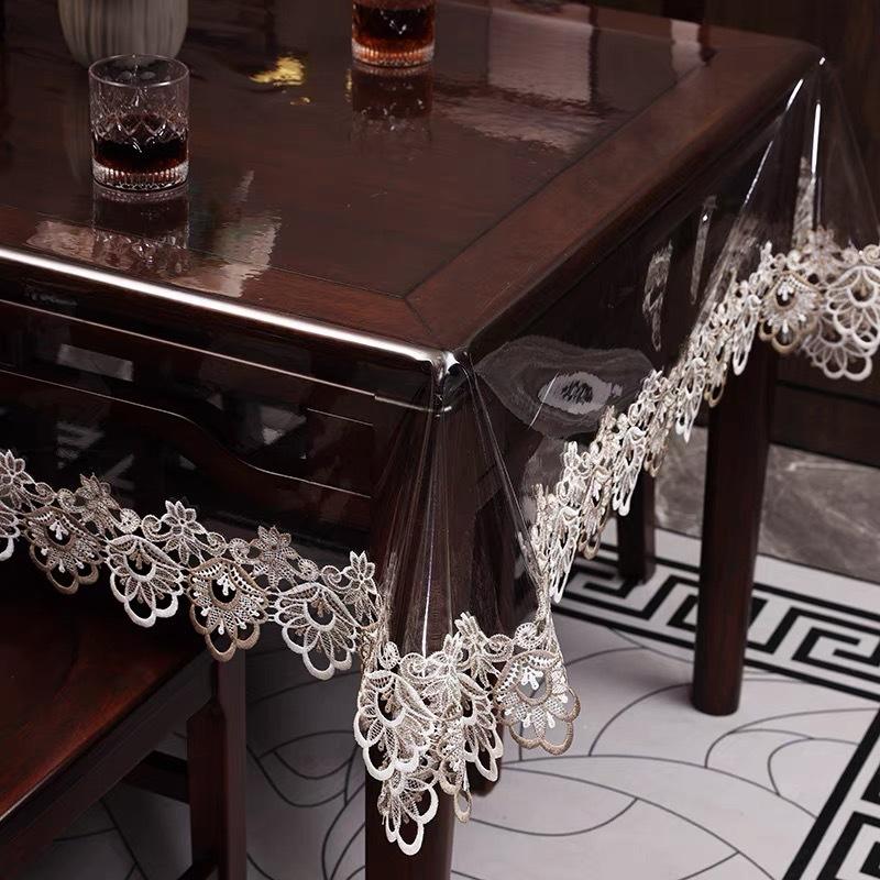 Mantel Impermeable y Antimanchas, Transparente, Lavable, para Mesa de Café, Cubierta de Cristal Suave, Mantel de Encaje