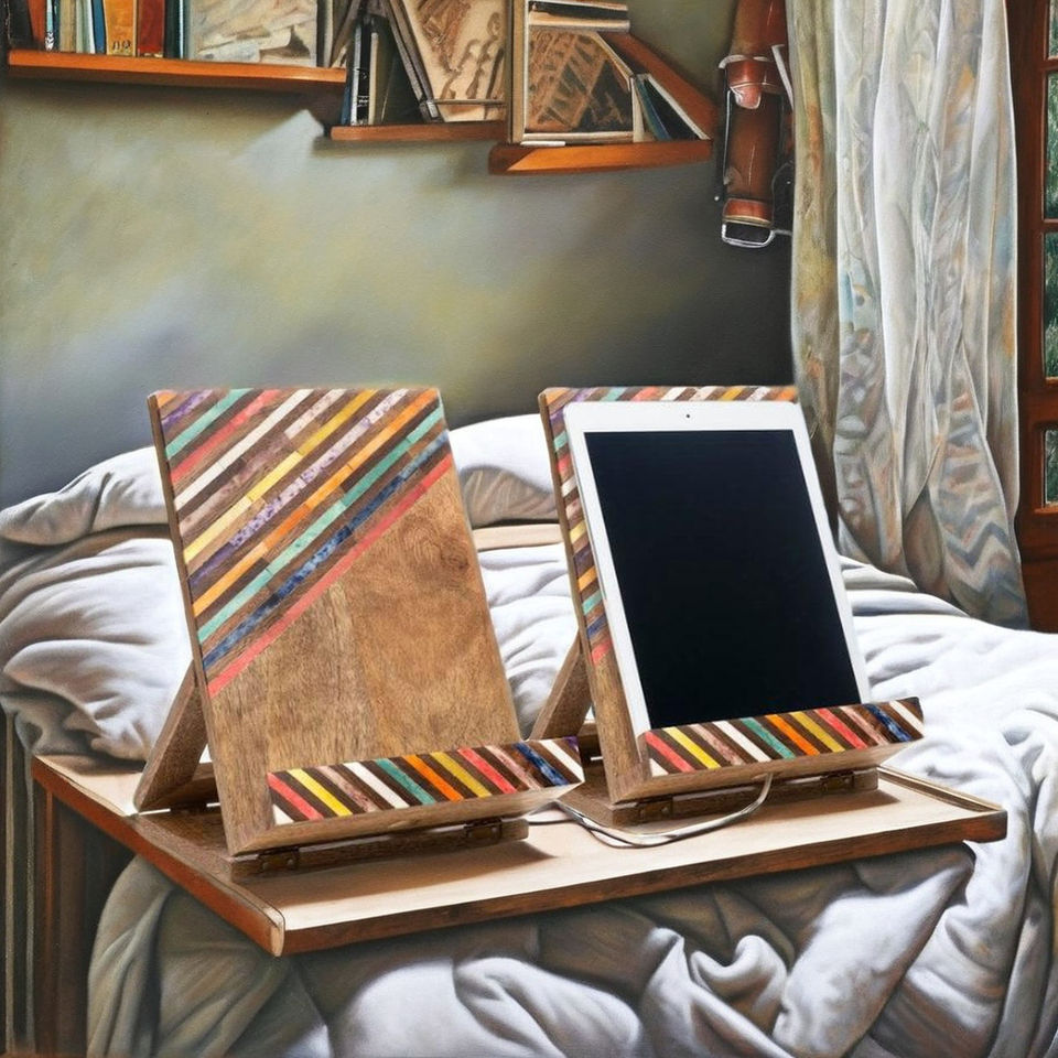 Soporte Ajustable para Tablet y Celular de Escritorio con Puerto de Carga, Ideal para Cocinar y Relajarse en el Escritorio