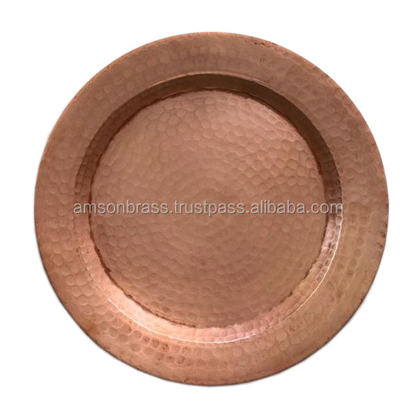 Placa de cargador de vajilla de mesa Placa de cargador redonda de cobre Placa de cargador de metal de diseño clásico hecha a mano