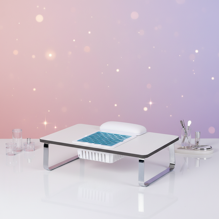 Mini Mesa de Belleza para Uñas con Colector de Polvo, Alta Calidad, Fácil de Mover