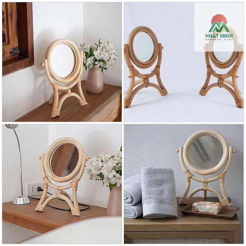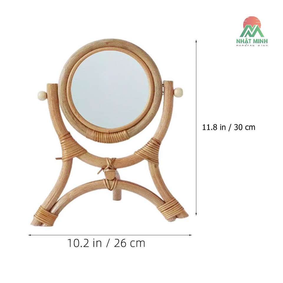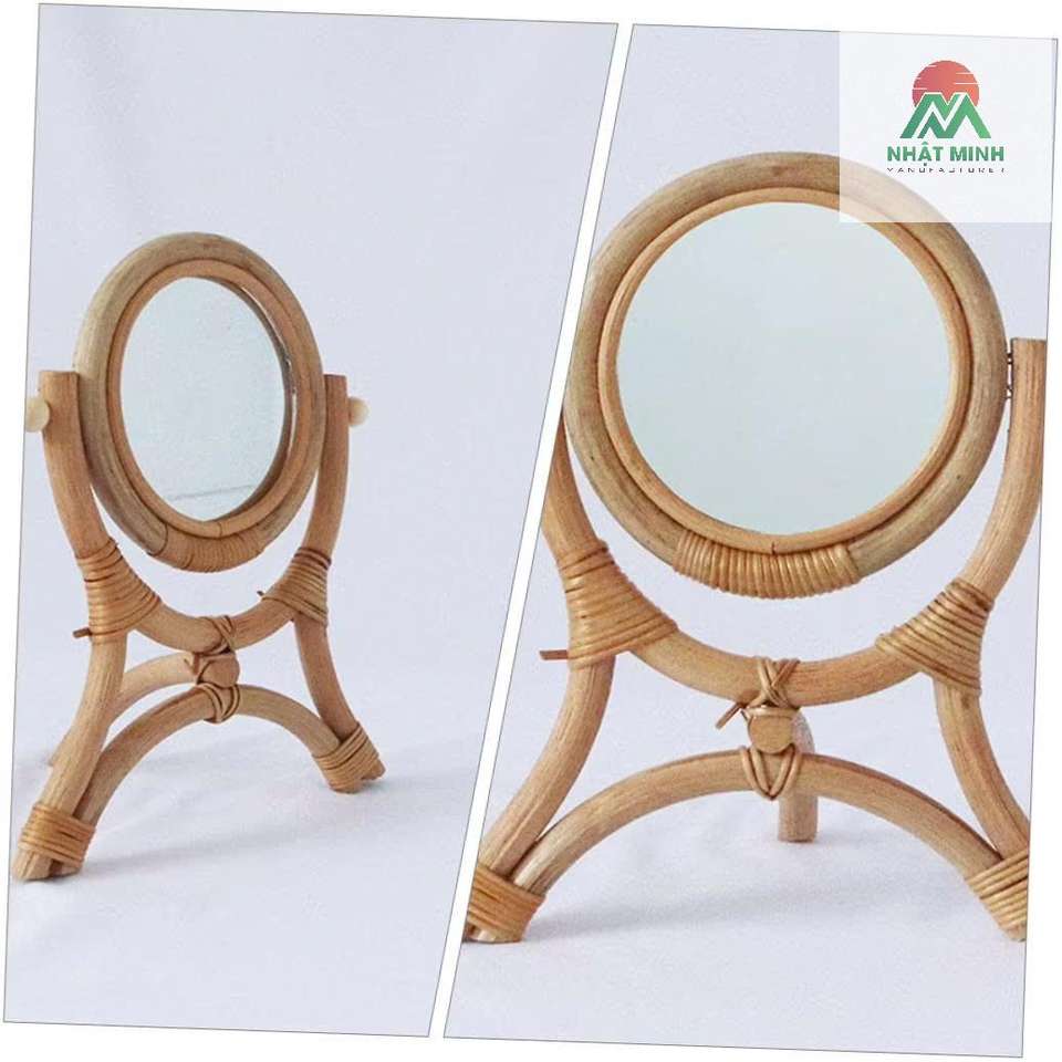 Nombre del producto:Espejo de Maquillaje de Mesa de Ratán con Trípode Estable