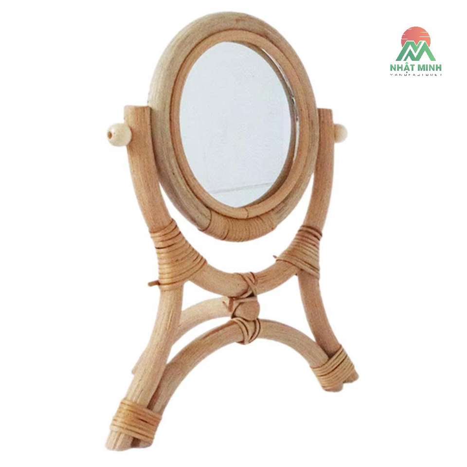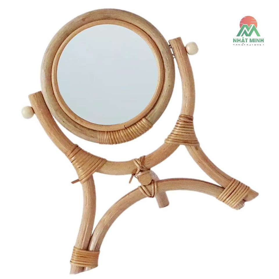 Espejo de Maquillaje de Mesa de Ratán con Trípode Estable