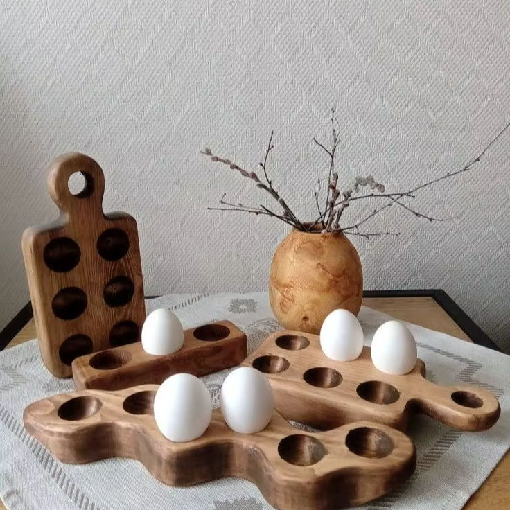 Estante de madera para huevos de mesa para organización de cocina de granja y diseño de decoración del hogar de estilo rústico natural