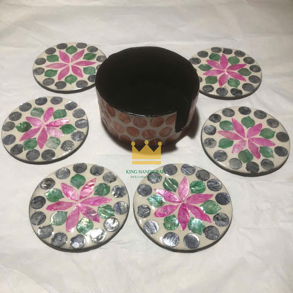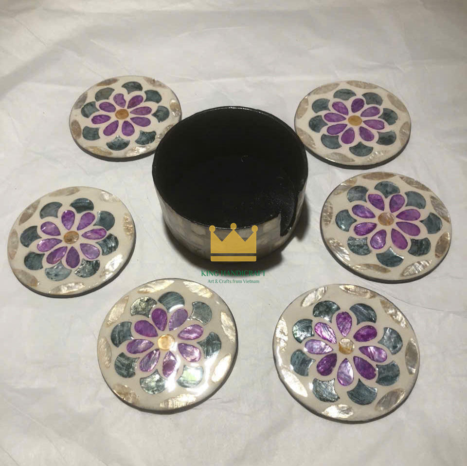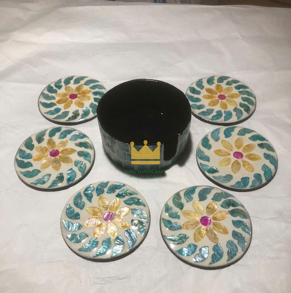 Vajilla Esteras y almohadillas Posavasos de nácar con soporte Portavasos con incrustaciones de conchas marinas Hecho en Vietnam