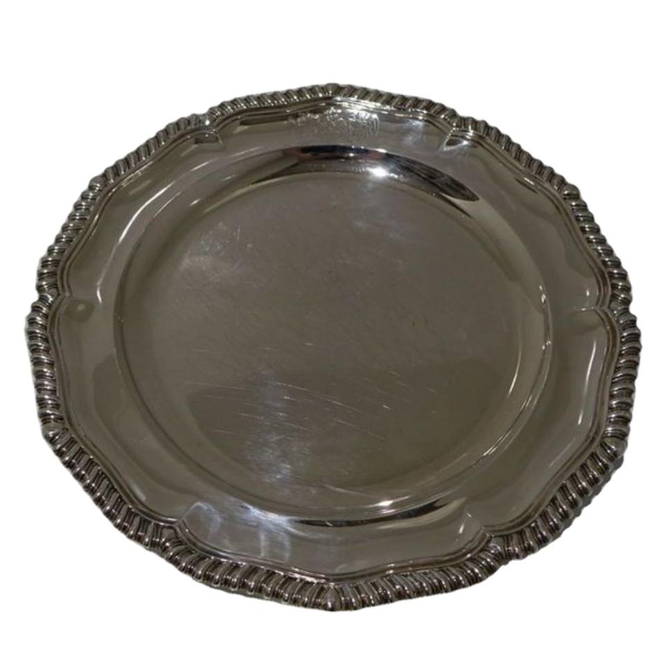 Plato de Servicio Plateado con Diseño Floral para Eventos, Platos de Latón de Grado Alimenticio para Restaurantes