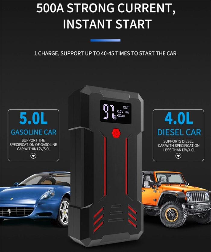 Cargador Portátil Tacklife 1500a Peak, Arrancador de Emergencia Multifunción, Banco de Energía para Camiones y Motocicletas con Luz LED