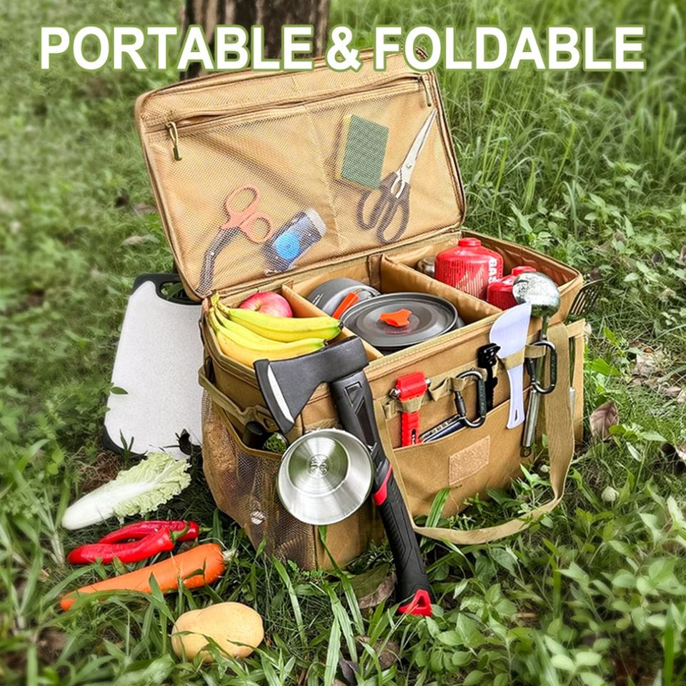 Bolsa de Almacenamiento Táctica para Camping, Bolsa de Transporte Multiusos, Organizador de Cocina para Camping con Soporte para Hacha y Correa para el Hombro