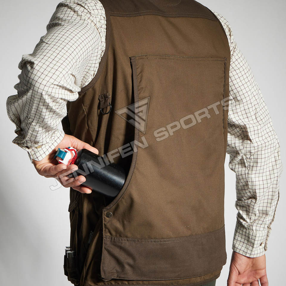 Chaleco de caza táctico cartucho de banda Material de concha 100% tela de lona de algodón cierre de cremallera frontal, interior, derecho, bolsillos izquierdos