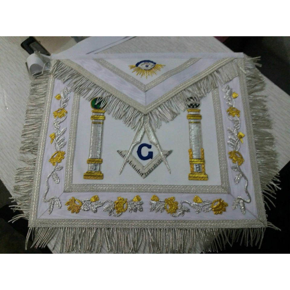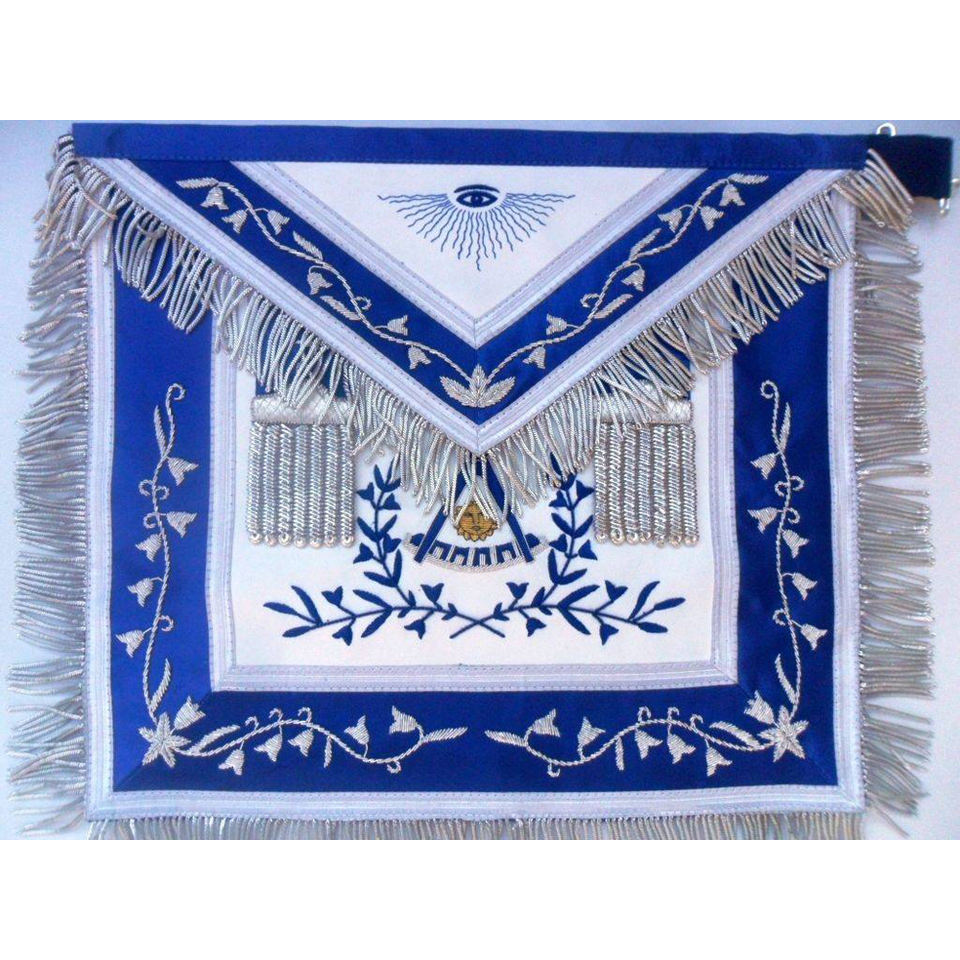 Delantal maestro masónico táctico bordado a mano Borde de seda azul bolsos Regalia para costura de punto de cruz precio de venta completo
