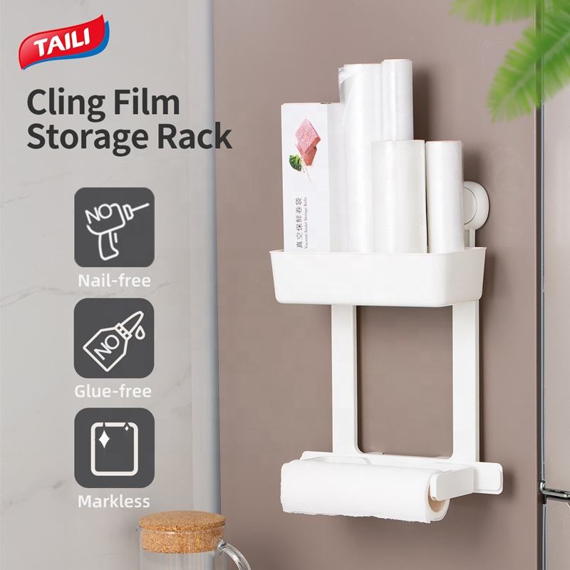 Taili, toallero de papel de película de plástico multifunción, organizador de almacenamiento, estante de pared de cocina para el hogar, accesorio