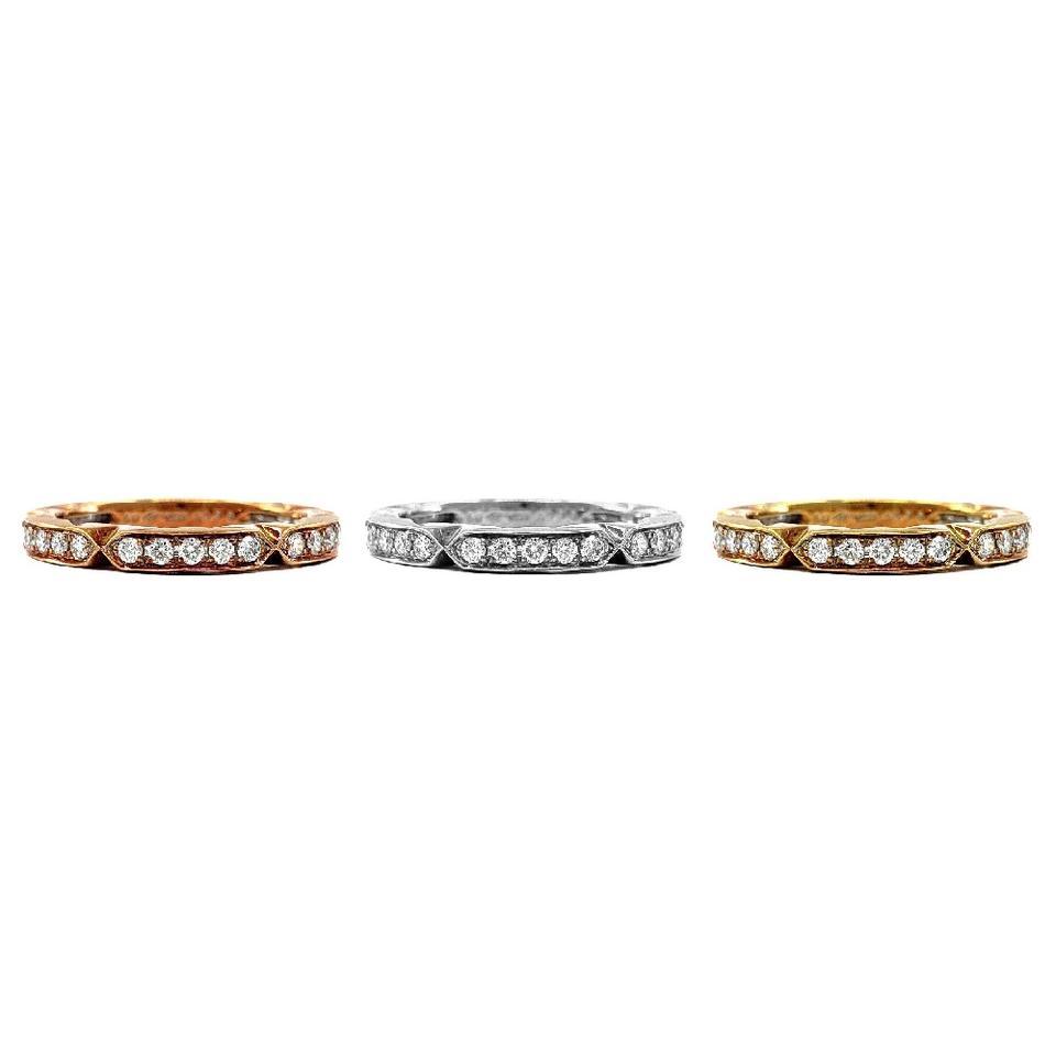Joyería hecha a medida Logotipo láser Banda de anillo delgada redonda de Diamante Real de oro rosa de platino de alta calidad para mujer y regalo