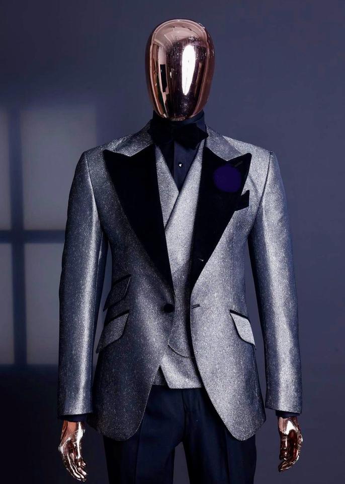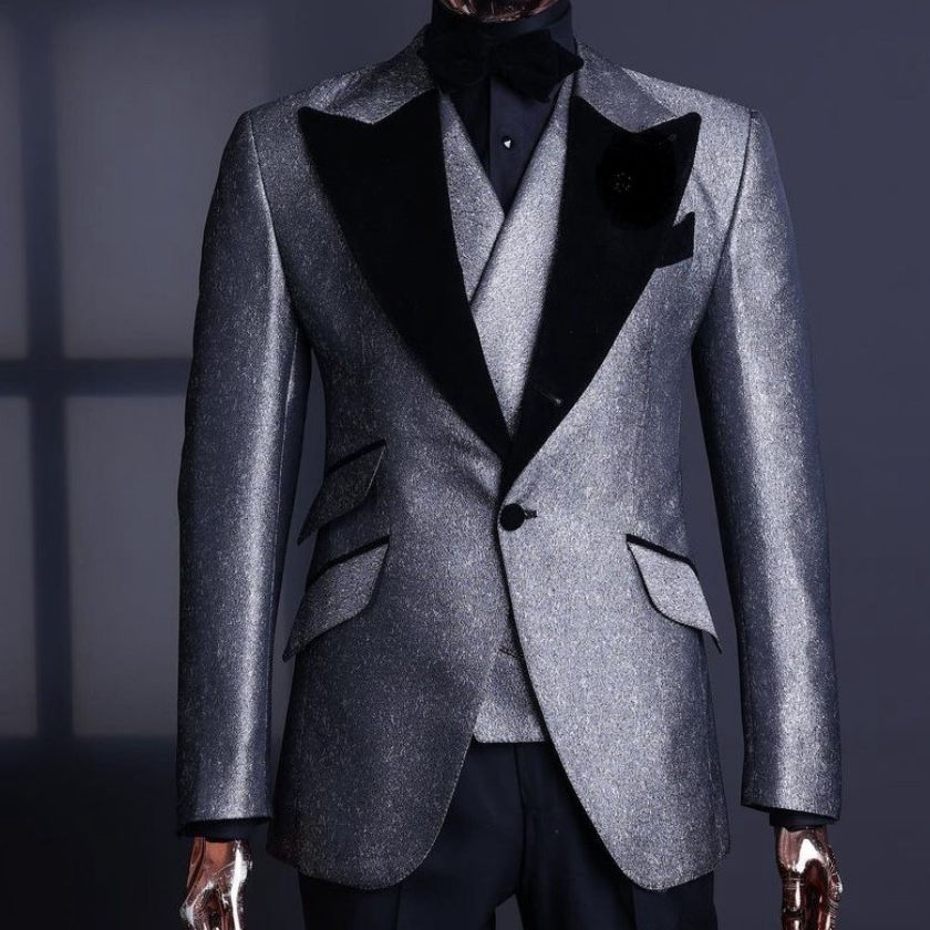 Hecho a medida un botón plata y negro Jacquard solapa novio esmoquin boda hombres trajes graduación cena Blazer