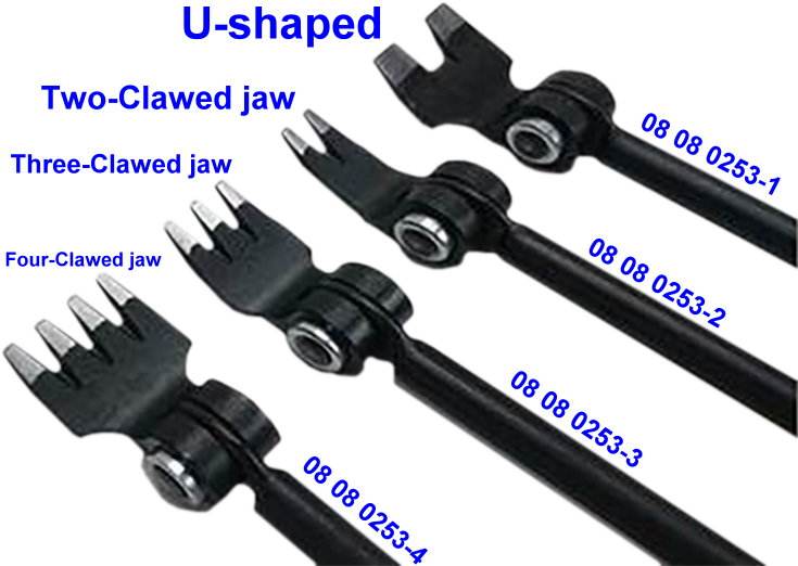 en forma de U, De dos garras, De tres garras, De cuatro garras