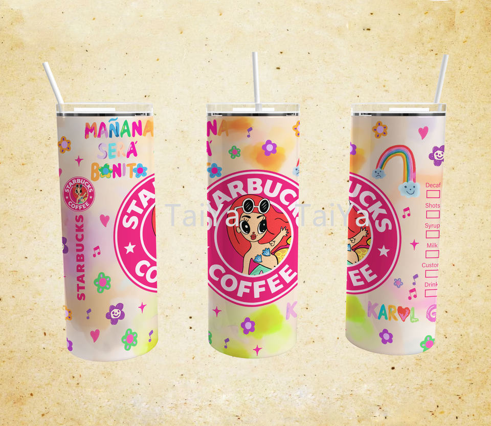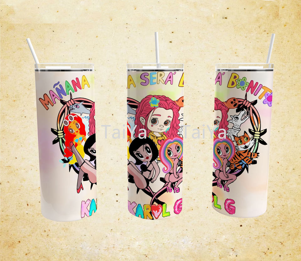 Nombre del producto:Karol G Manana Sera 20oz Vaso con tapas y pajitas