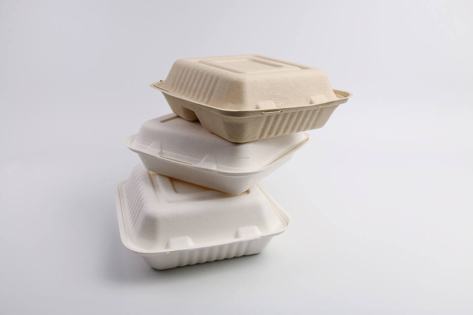 Envase de Comida para Llevar, Biodegradable, de Bagazo de Caña de Azúcar, Caja de Cartón Tipo Concha