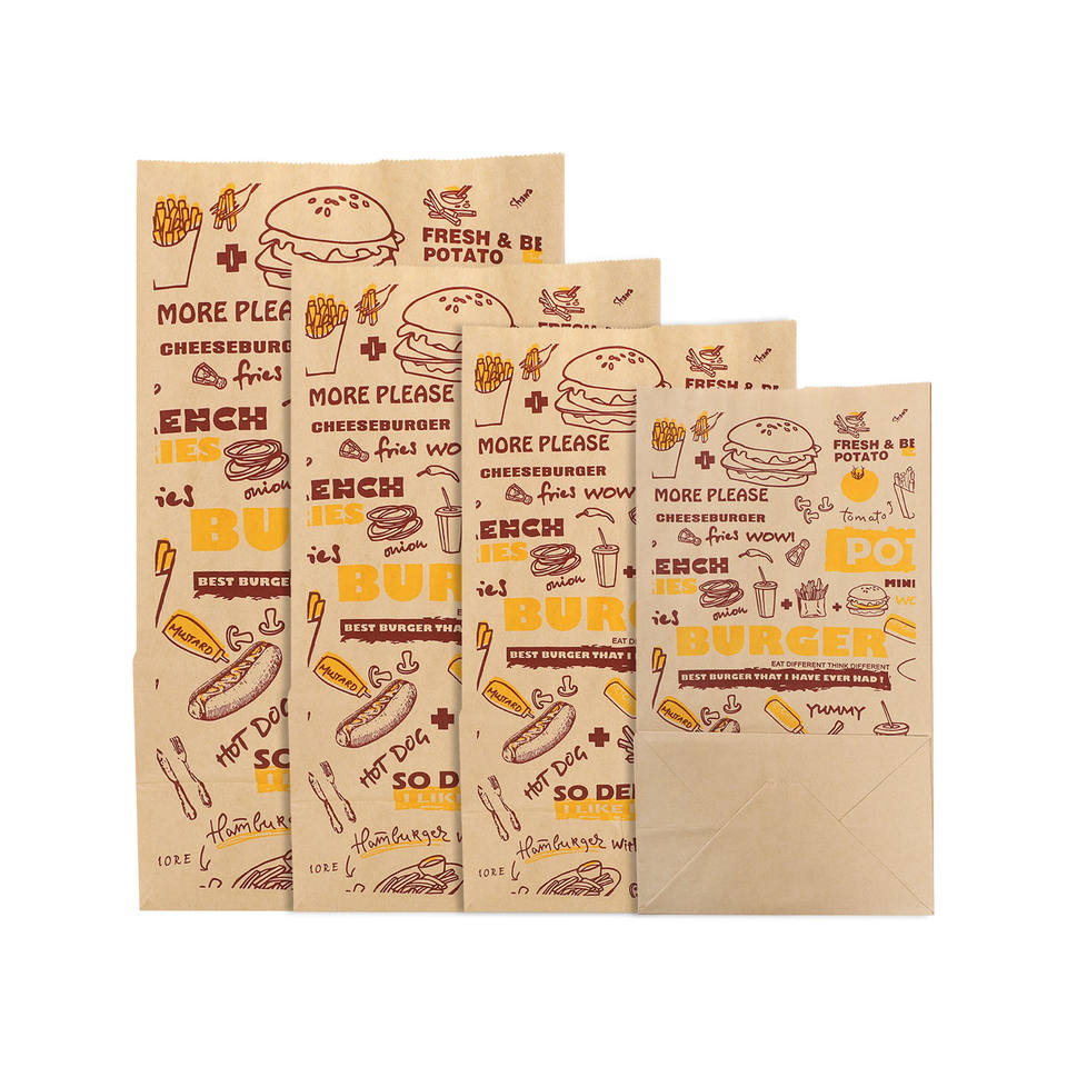 Bolsa de Papel Kraft para Comida para Llevar, con Fondo Cuadrado, sin Asas, Bolsas de Papel Marrón SOS con su Propio Logotipo