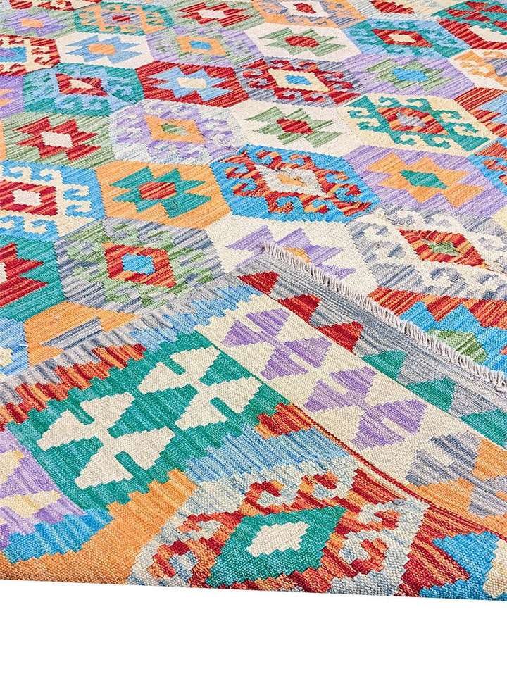 Alfombra Takhar Afgana Chobi Kilim, Tejida a Mano, de Lana, Multicolor, 9.4x6.8, Moderna, para Sala de Estar, Dormitorio, Habitación Infantil