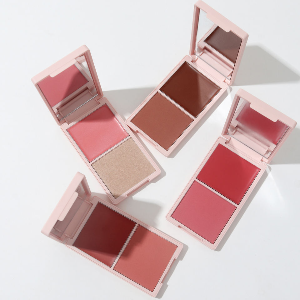 Paleta de Rubor en Polvo y Crema de Alta Pigmentación Bicolor con Tu Logotipo