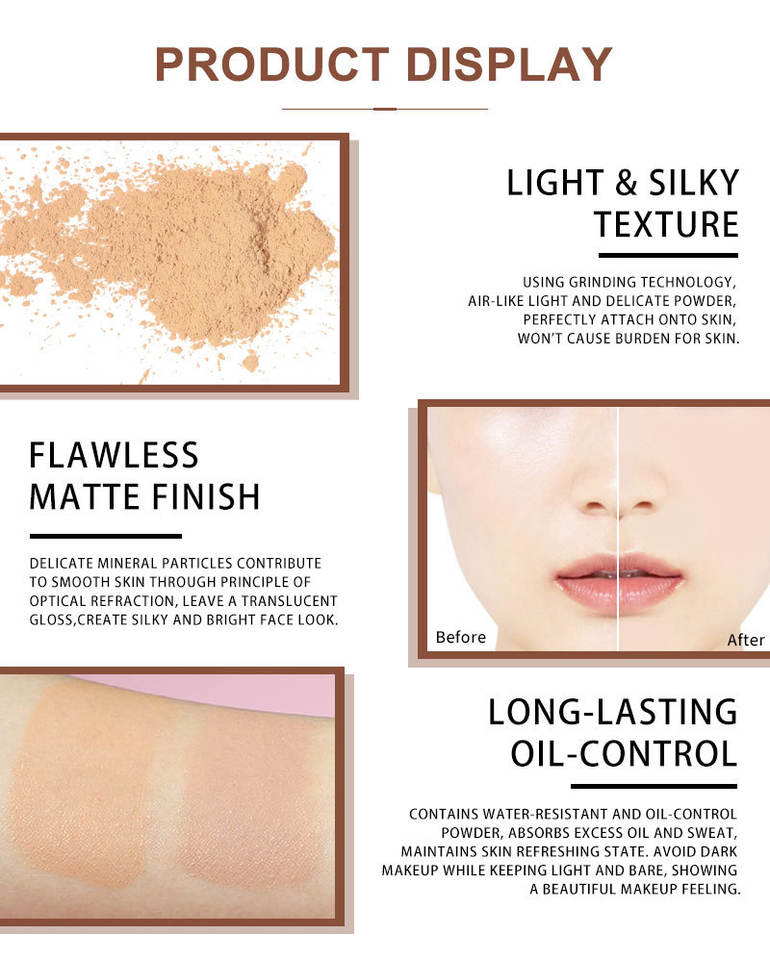 Sin talco, Rosa vegano, translúcido, Control de aceite, resistente al agua, base mate, maquillaje, Etiqueta Privada, brillo Hd, polvo de ajuste suelto