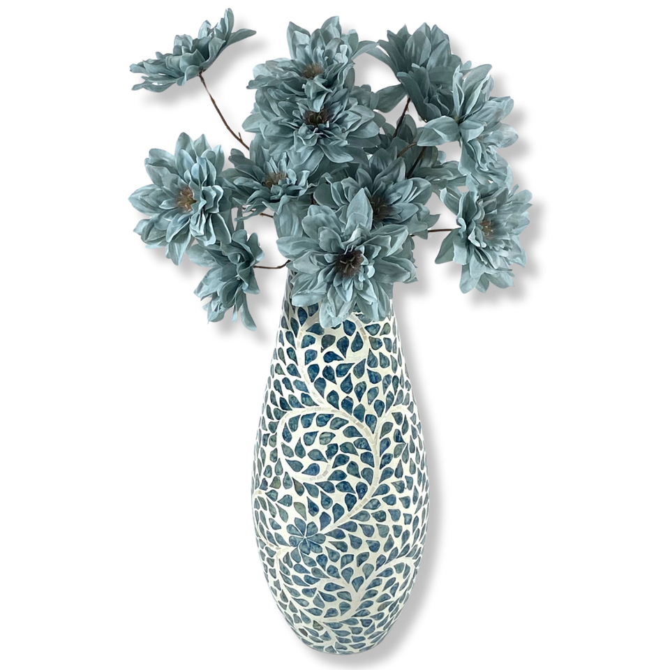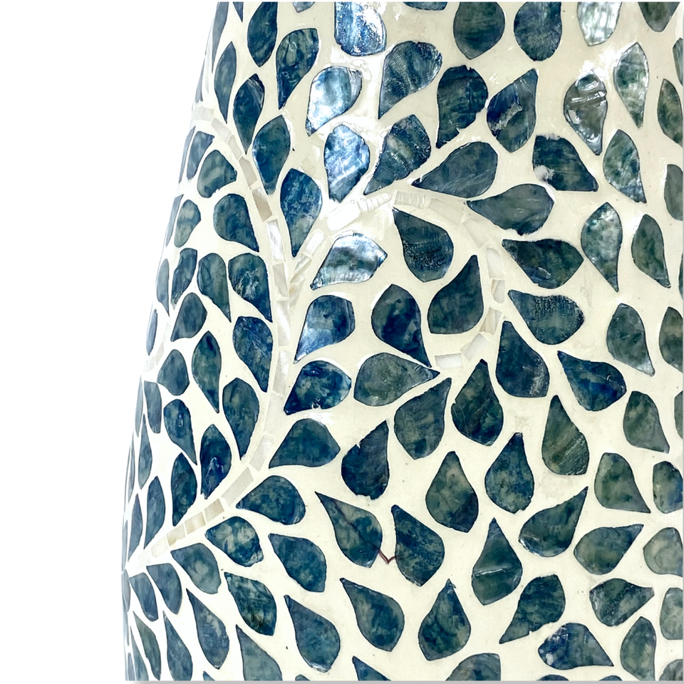 Jarrón de mesa con incrustaciones de Capiz de cerámica Vintage de lujo, patrón de hoja azul alto hecho a mano, esmalte perlado duradero, Art Deco, boda, hogar