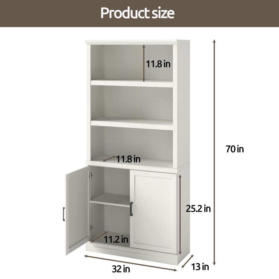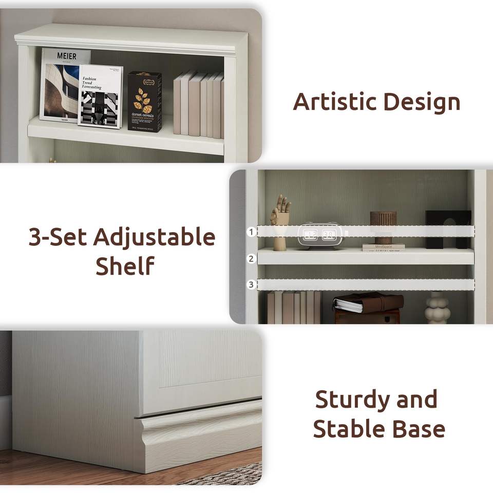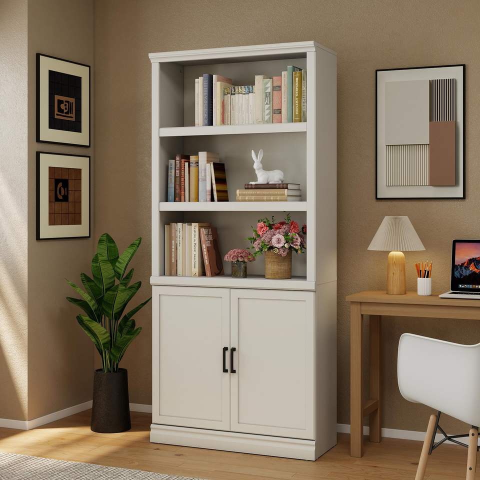 Librero Alto Moderno de Madera con Puertas, Estantería Ajustable para Oficina o Biblioteca, Mueble para Libros con Base Antideslizante para Sala de Estar o Dormitorio