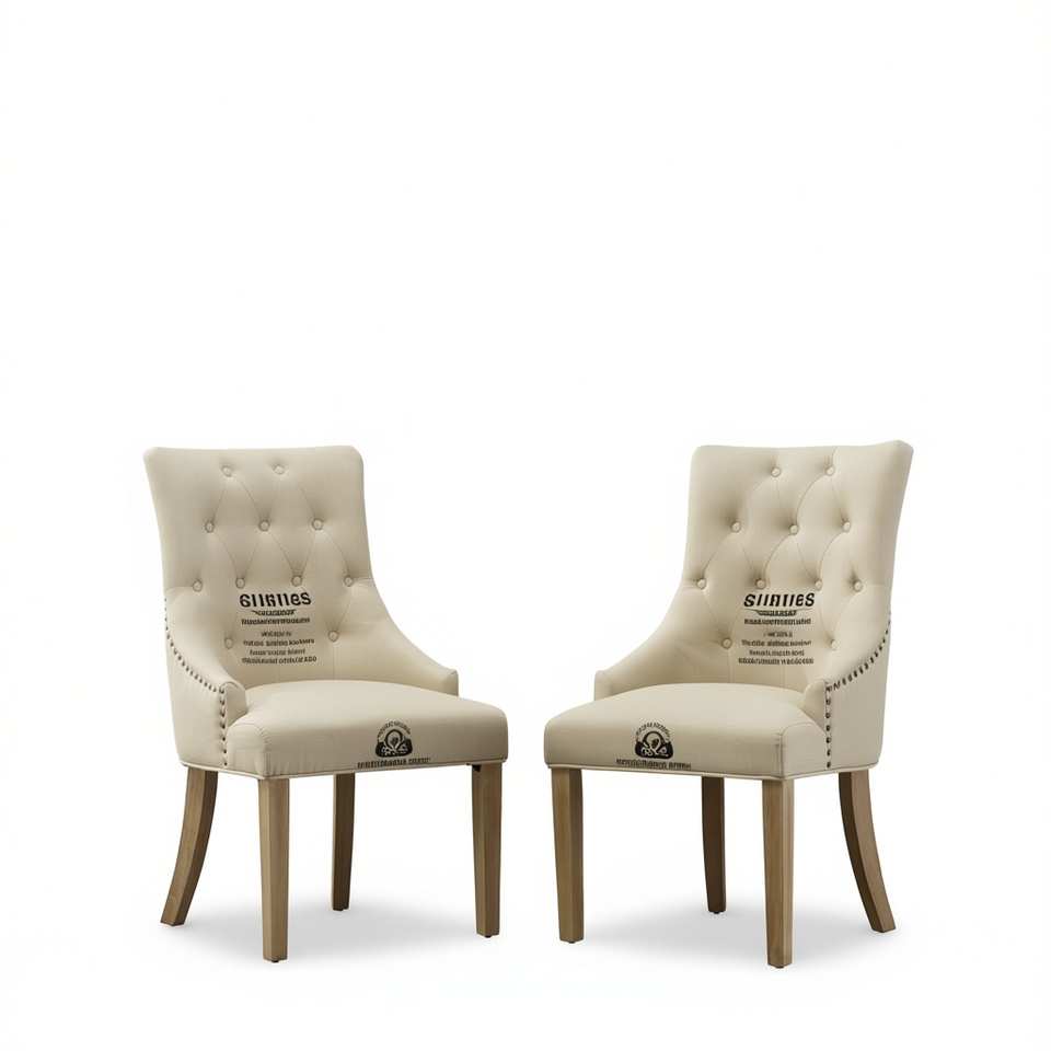 Juego de 2 sillas de comedor Tan Tufted de madera maciza con respaldo de ala y clavos decorativos