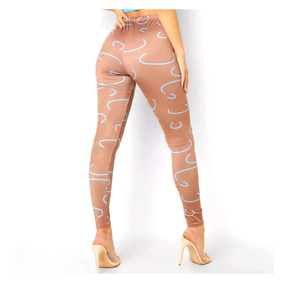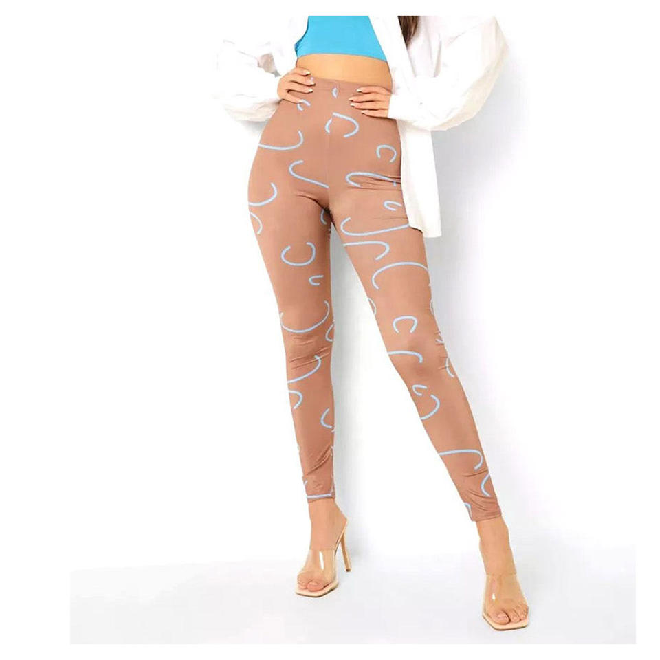 Leggings de cintura alta color bronceado con estampado de líneas azules abstractas, pantalones de yoga con tacto suave y efecto segunda piel, mallas de entrenamiento para mujer, estilo athleisure.
