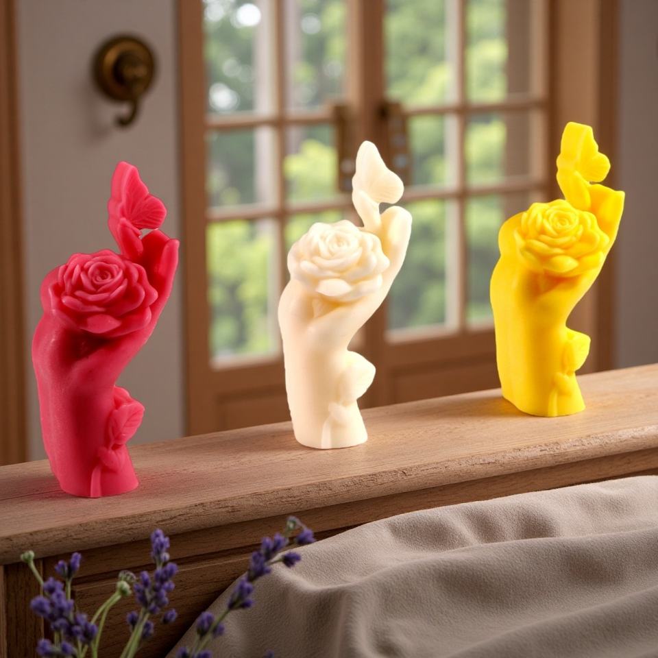 Nombre del producto:Molde de silicona para vela aromática con forma de mariposa posada en un dedo