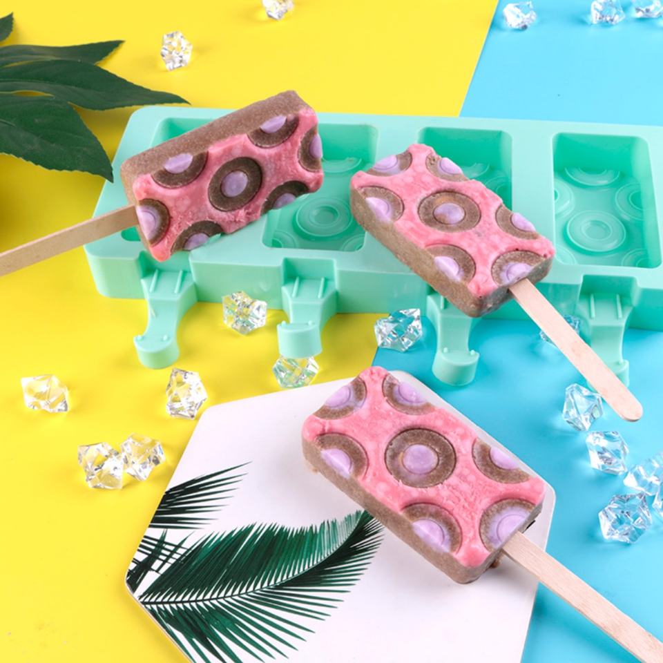 Molde de Silicona Rectangular TangChu con Patrón de Círculos para Helados Artesanales y Snacks Saludables