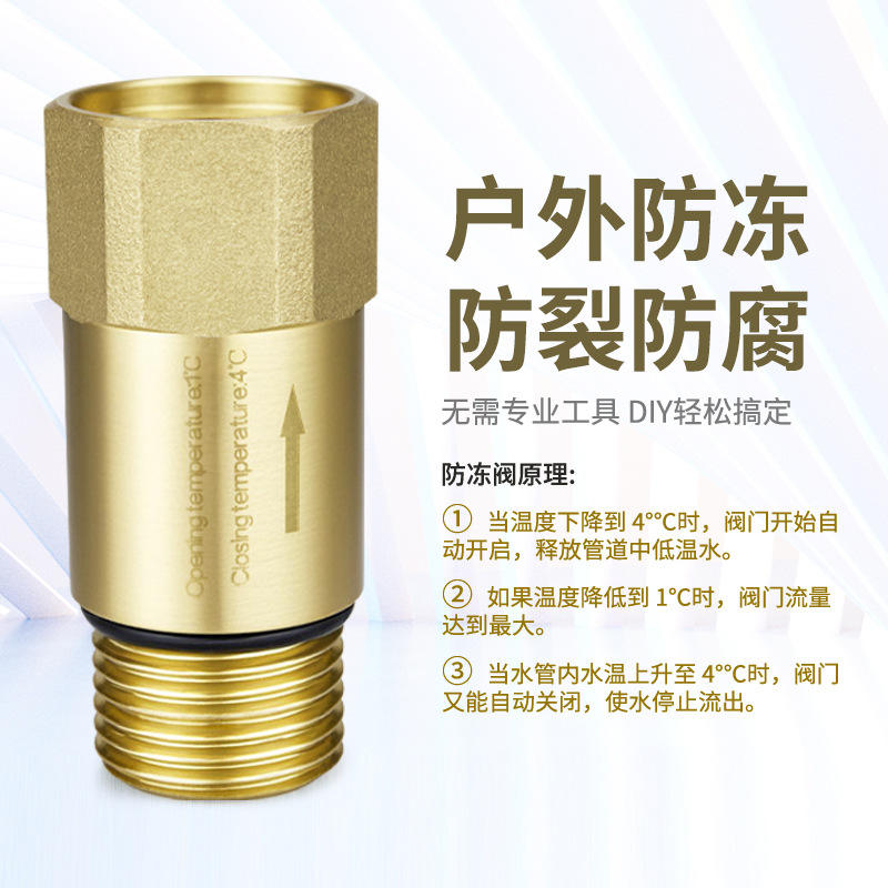 Válvula Anticongelante Tangke de 4 Puntos con Sensor de Temperatura Integrado para Tuberías de Agua, Válvulas de Seguridad para Interiores y Exteriores