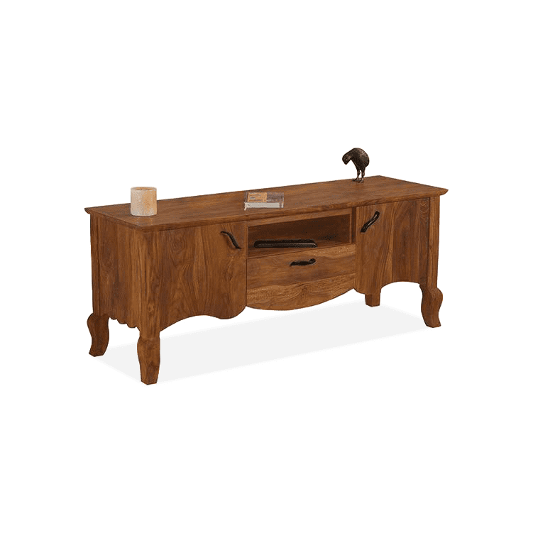 Tania, diseño tradicional contemporáneo, soporte de TV de madera de Mango plegable, mueble de TV de madera maciza para sala de estar, granja Vintage