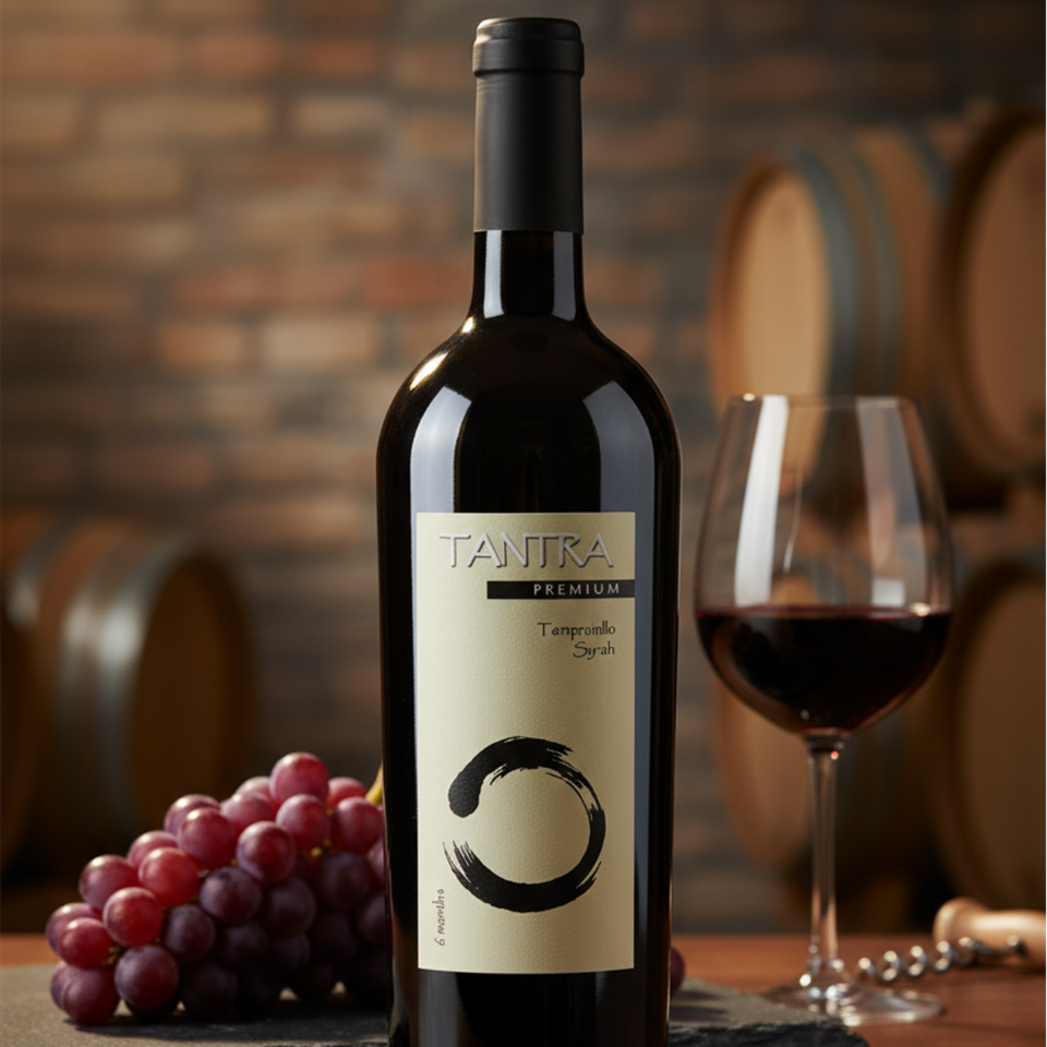 Vino Tinto Seco Tantra Tempranillo y Syrah, 13% Vol., 6 Meses de Añejamiento en Roble, 0,75 L, de España