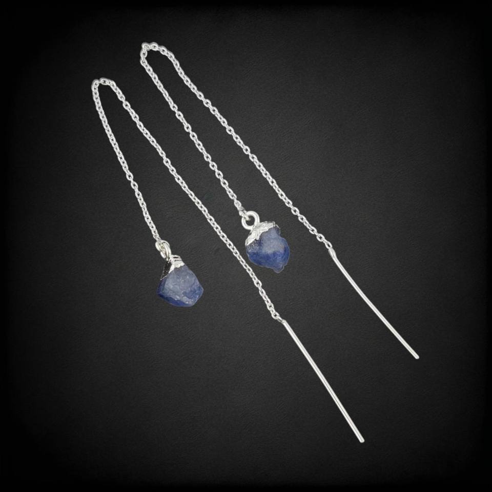 Pendientes enhebradores galvanizados de oro con piedras preciosas crudas de tanzanita, joyería de cristal Natural delicada de piedra natal de diciembre para mujer