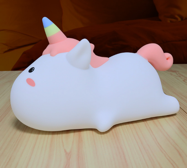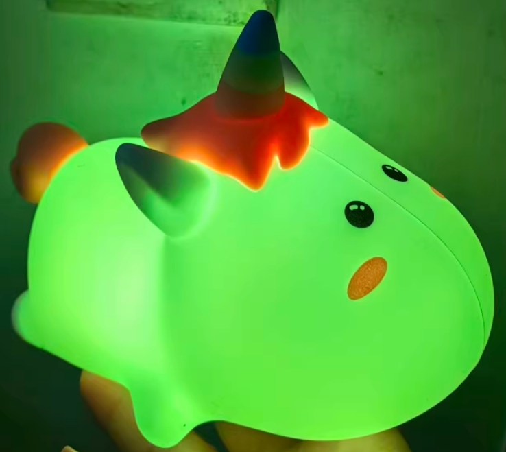 Luz de noche de silicona con forma de unicornio.
