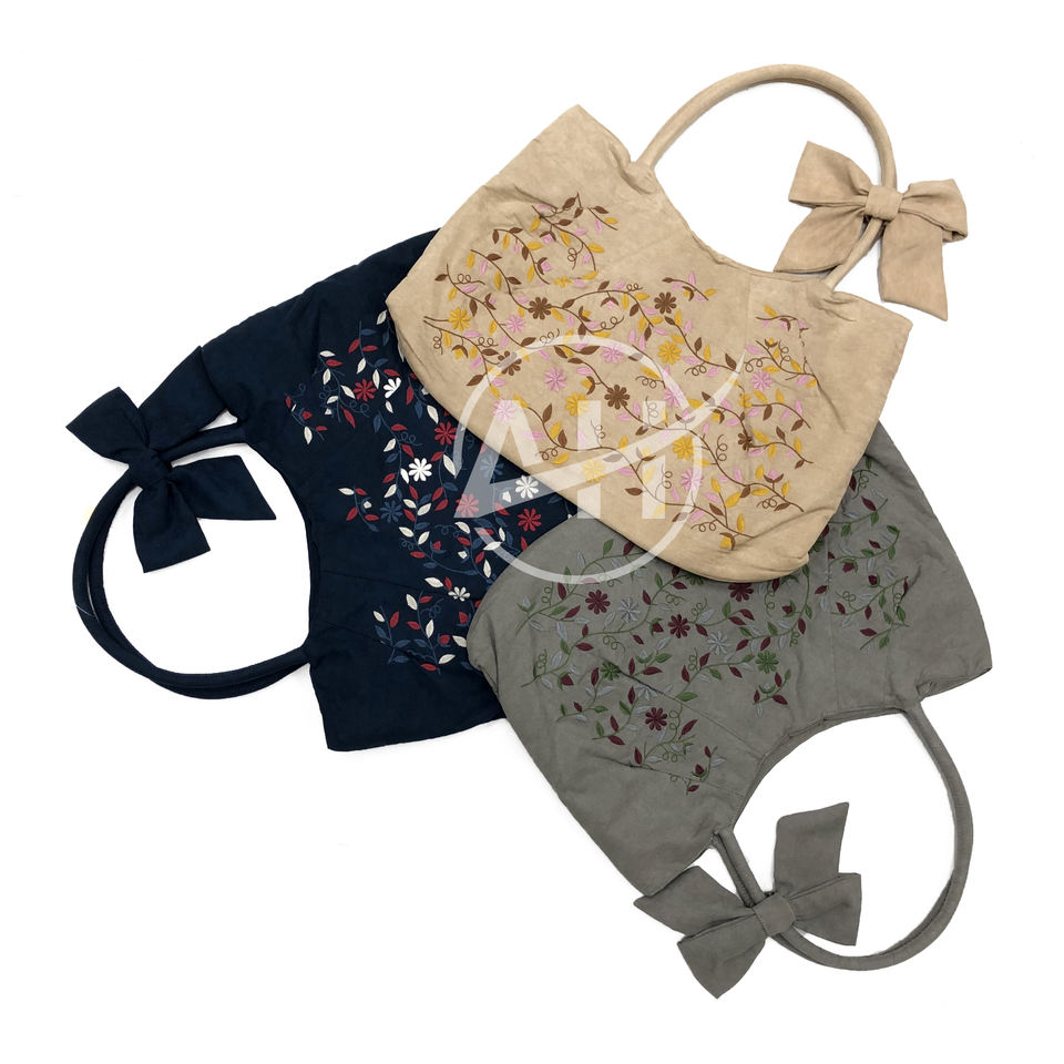 Bolso de mano bordado con cinta de algodón, bolso de mujer con asas de PU