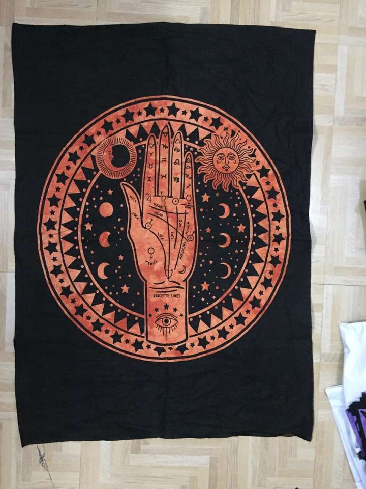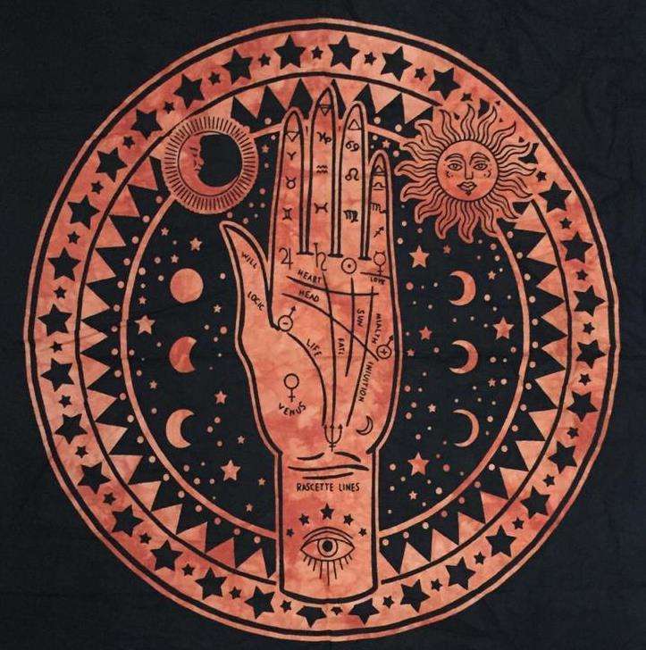 Tapiz de pared de tarjeta de Tarot, póster pequeño de tela de algodón para altar, Tarot de quiromancia de mano Humsa, extendido por consignadores indios