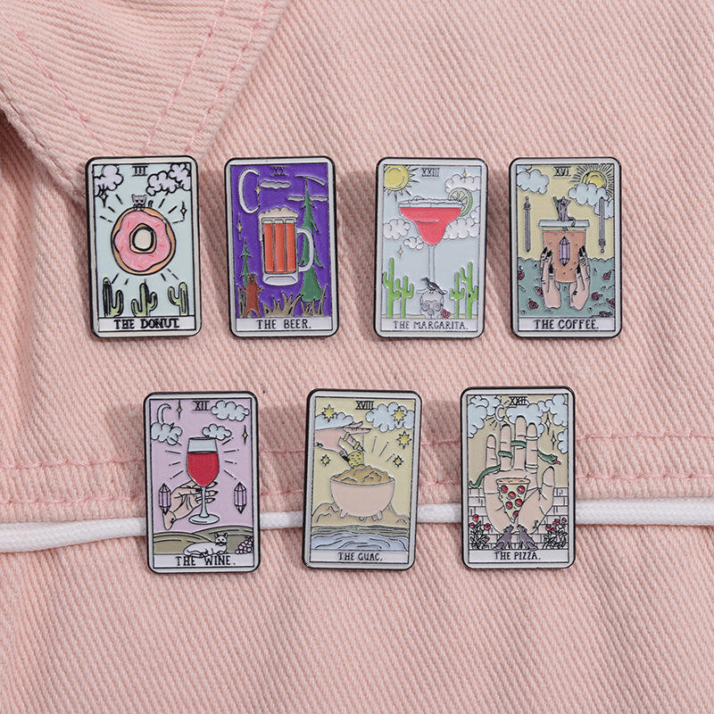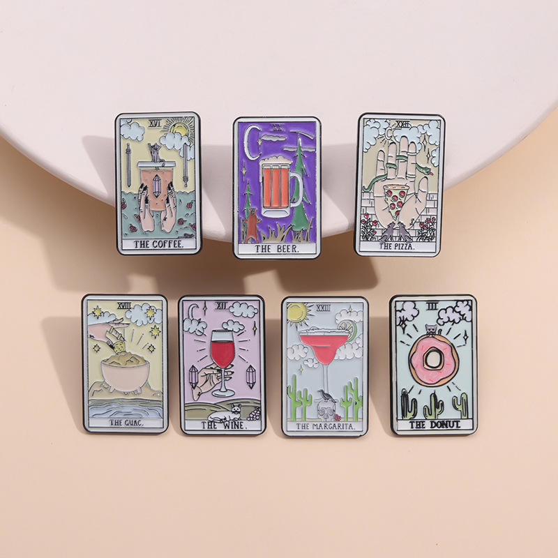 Tarot esmalte Pin insignia tarjeta taza gato sol estrella nube Punk el café vino cerveza Pizza comida solapa ropa mochila Accesorios